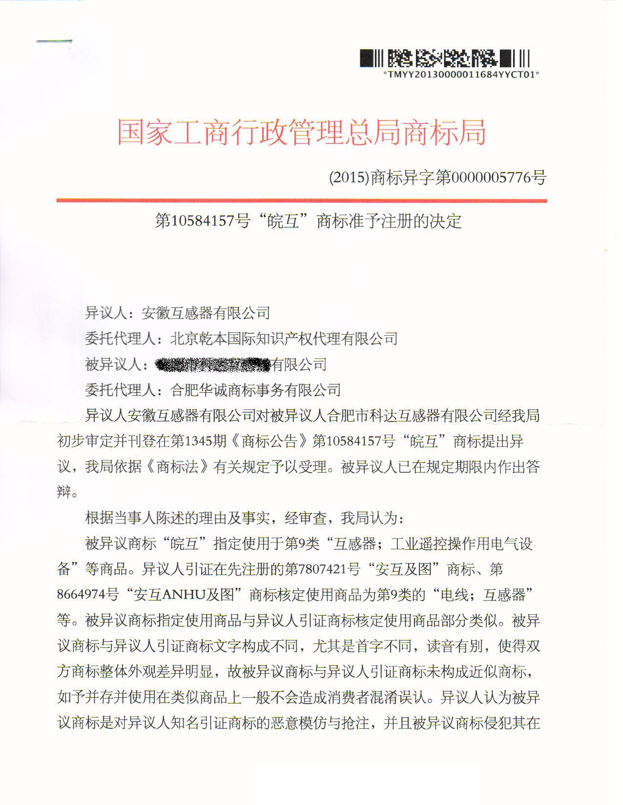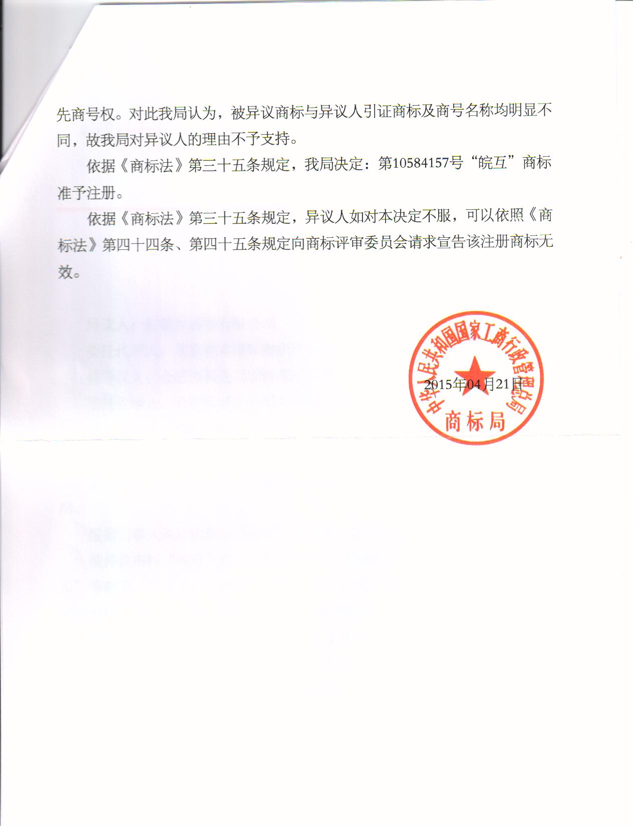 异议答辩成功裁定