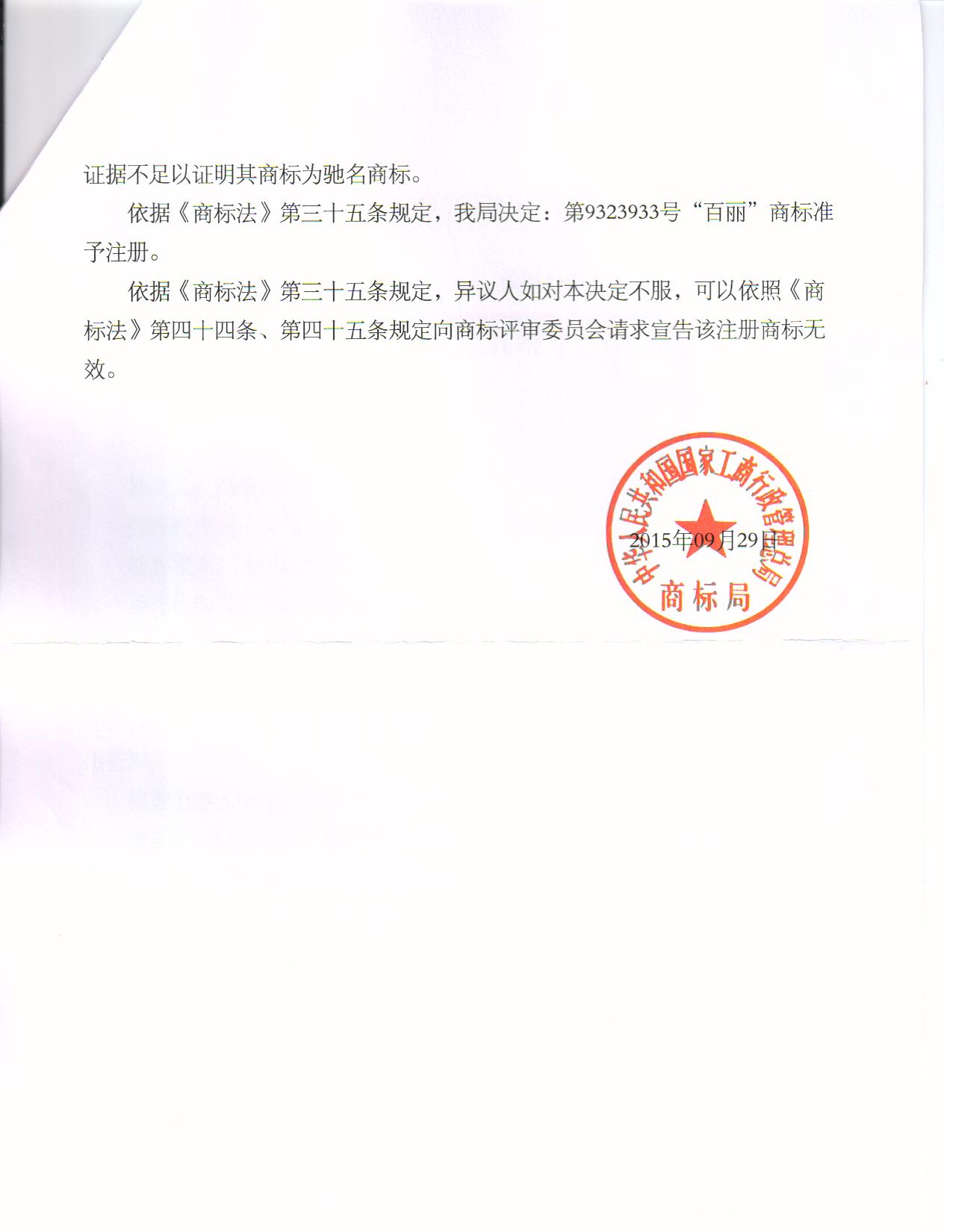 异议答辩成功裁定