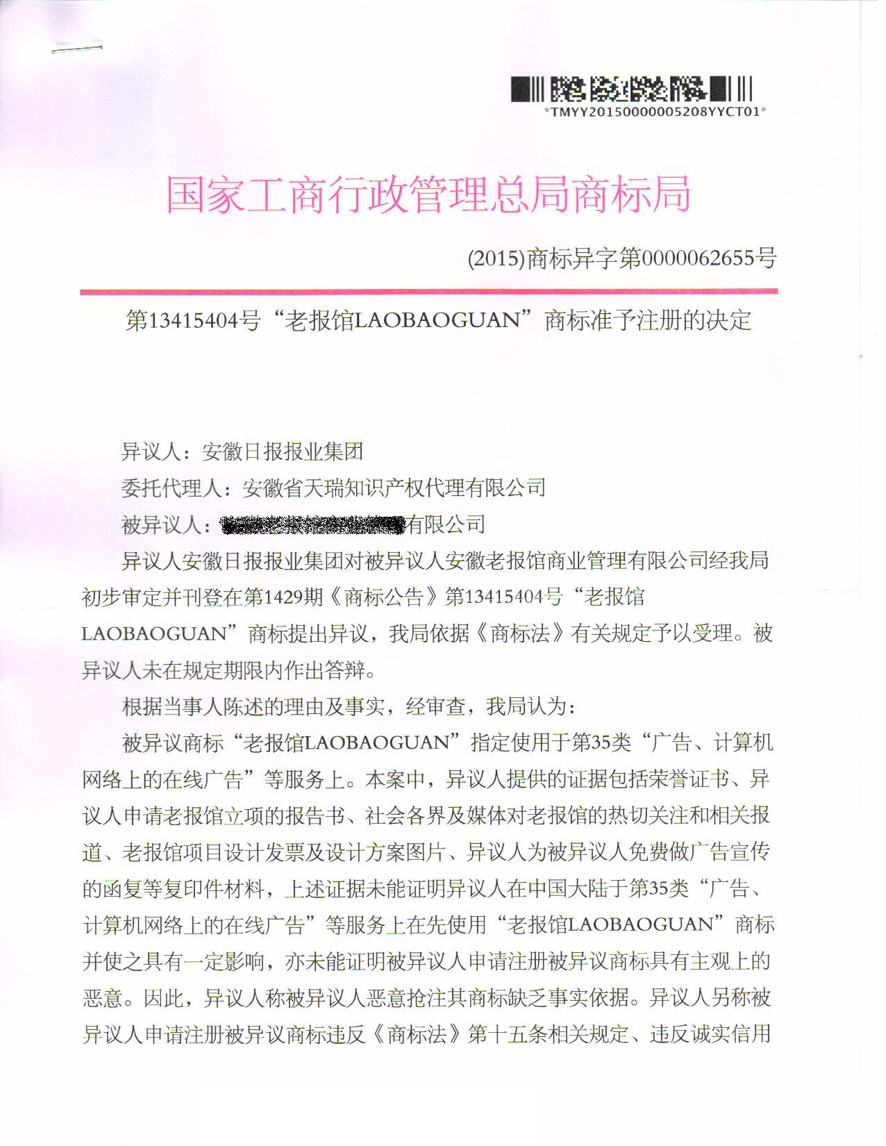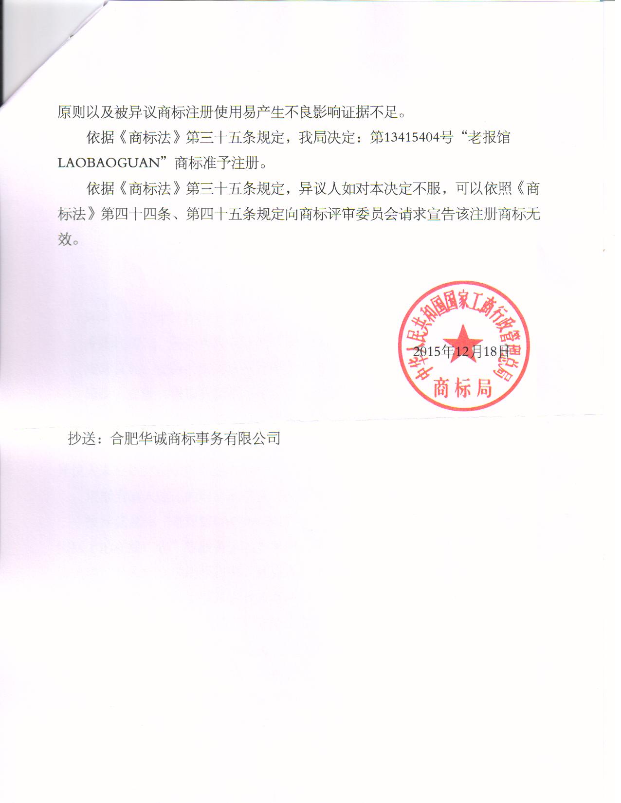 商标准予注册的决定