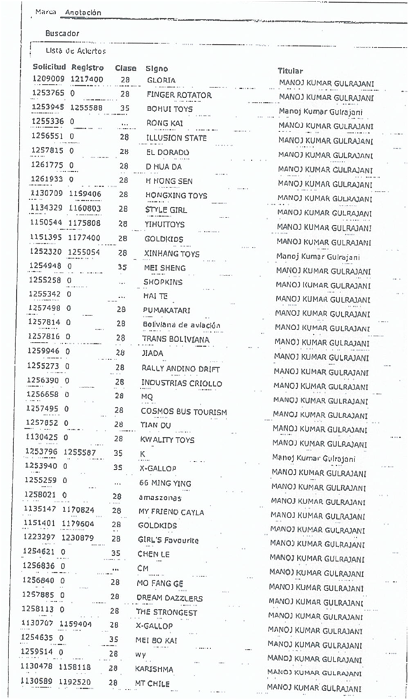 近日我局收到相关函件,称有一名外籍商人将120多个中国玩具企业的厂名及商标以个人名义在智利工业产权局(INAPI)申请注册,主要涉及第28类玩具相关产品(相关案件信息见附件)。据了解,目前其大部分商标注册申请已经进入公告程序,如无异议将可能在近日内获得批准。