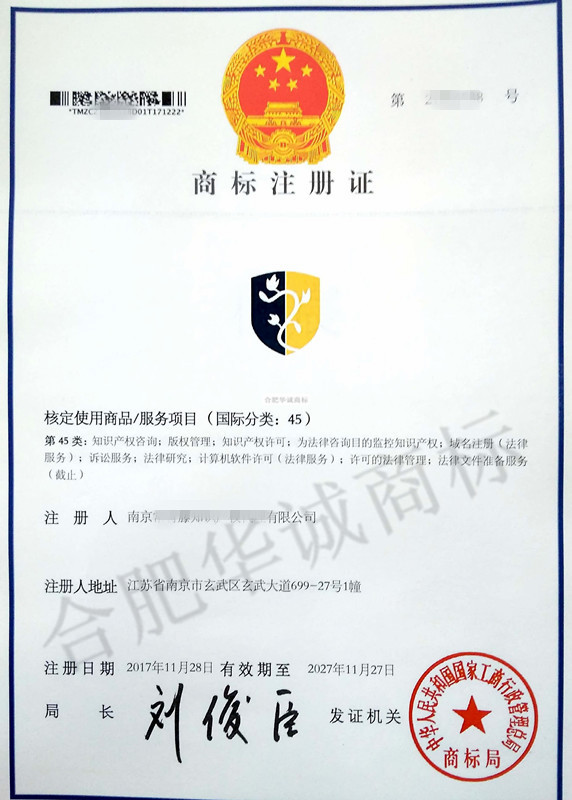 您委托我所代理商标注册申请,名称为“图形” 45类商标注册证已下达。