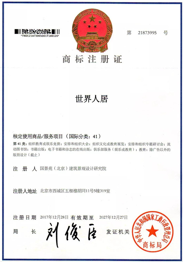 中国园林网3月8日消息:根据国家工商总局商标局网站消息,世界人居商标均获准注册,并且从2017年12月28日开始获准使用注册商标标志。