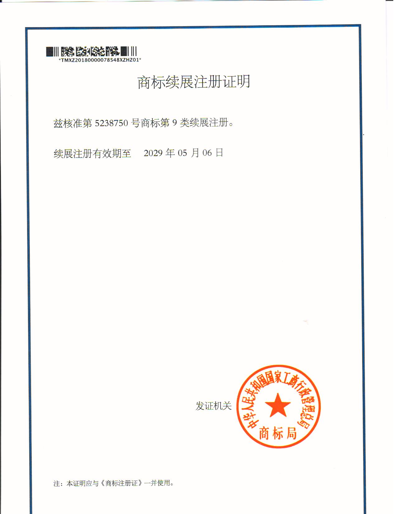 您委托我所代理商标注册申请,第“5238750”9类商标续展注册证明已下达。